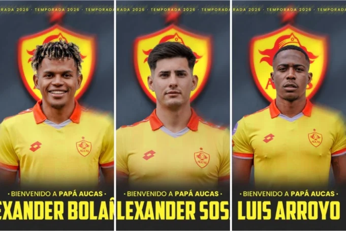 Aucas hizo esta mañana el anuncio oficial de cuatro nuevos refuerzos para la próxima temporada. Estos son: el delantero Luis Arroyo, así como el ofensivo Danny Luna, más el atacante argentino Alexander Sosa y Romario Bolaños, elemento que cumplió una sanción impuesta tiempo atrás por adulteración de documentos.