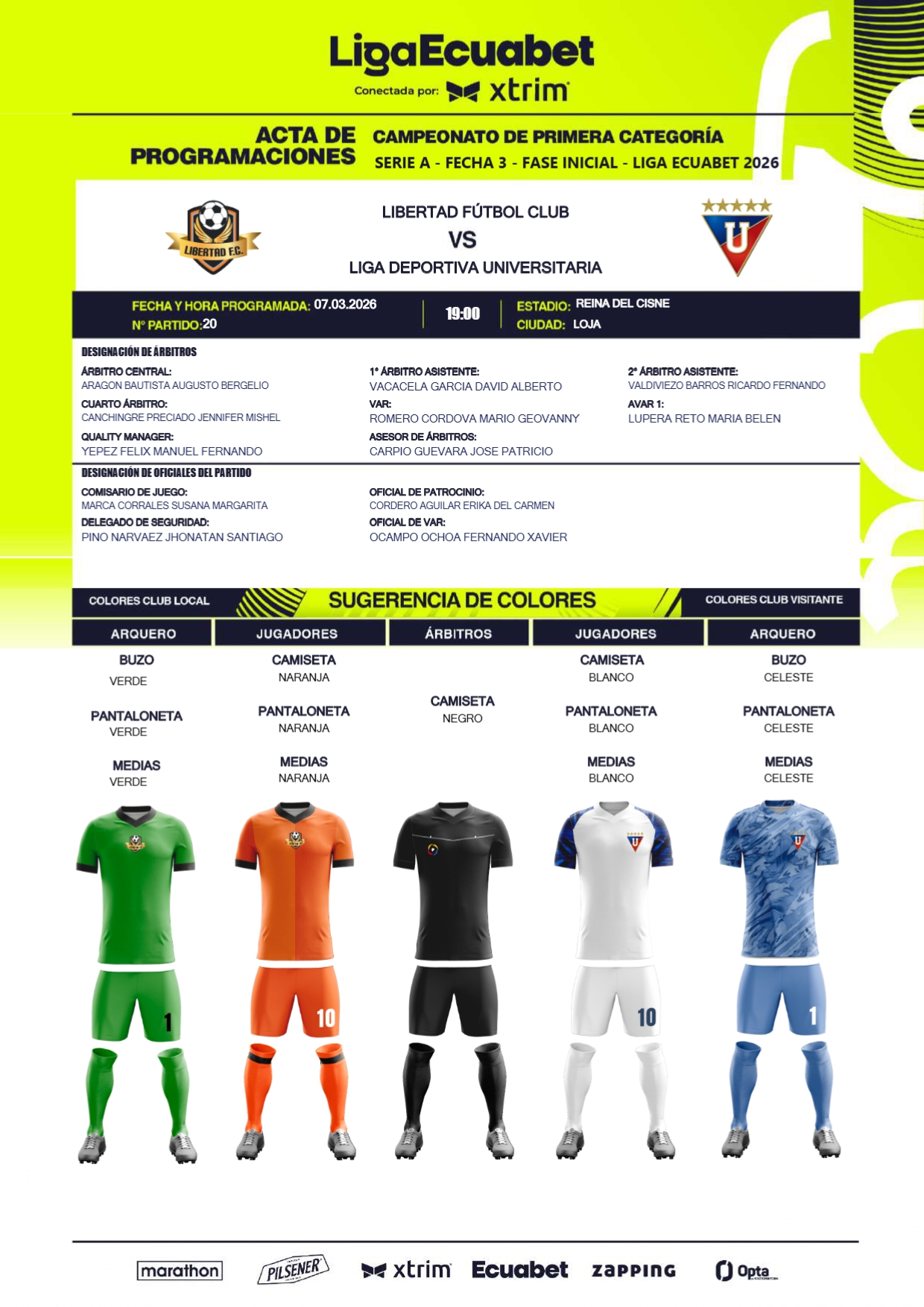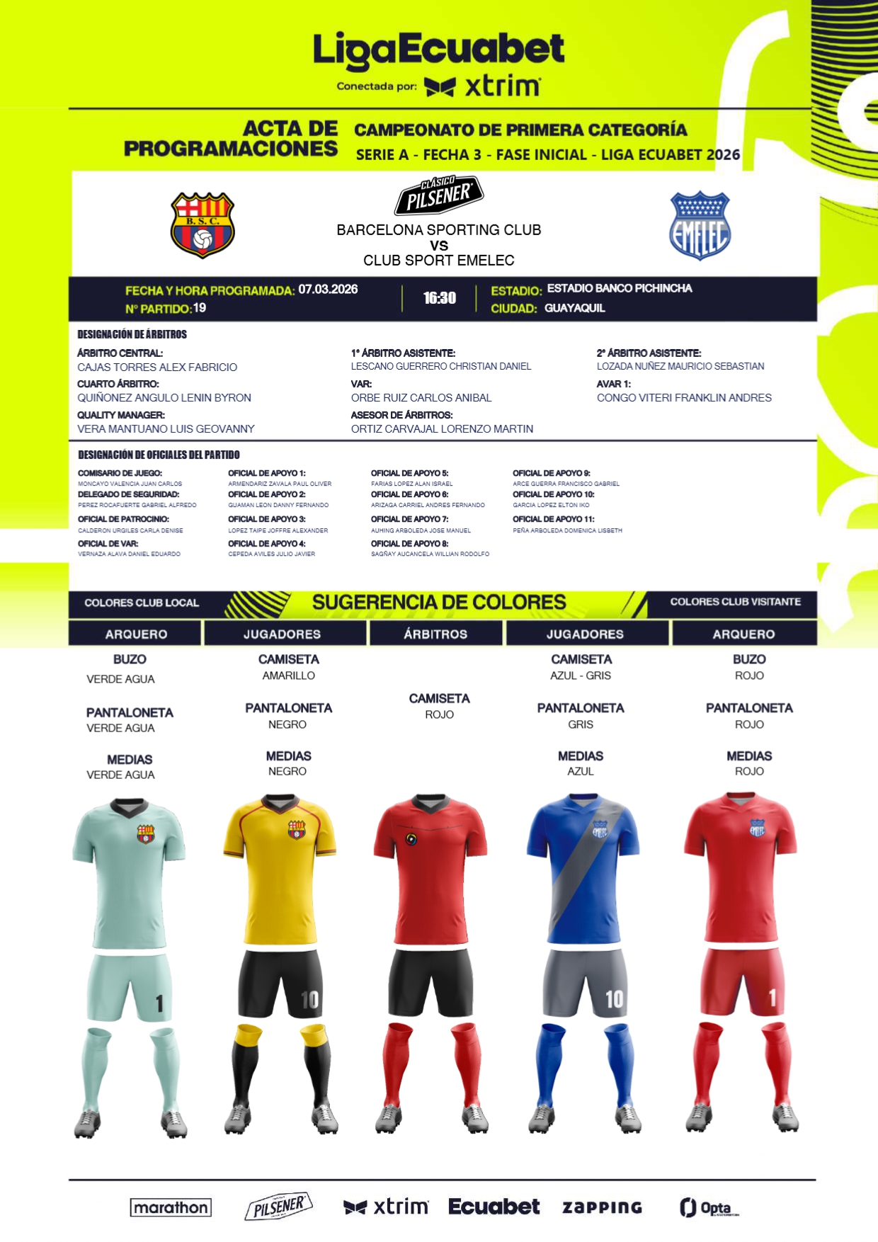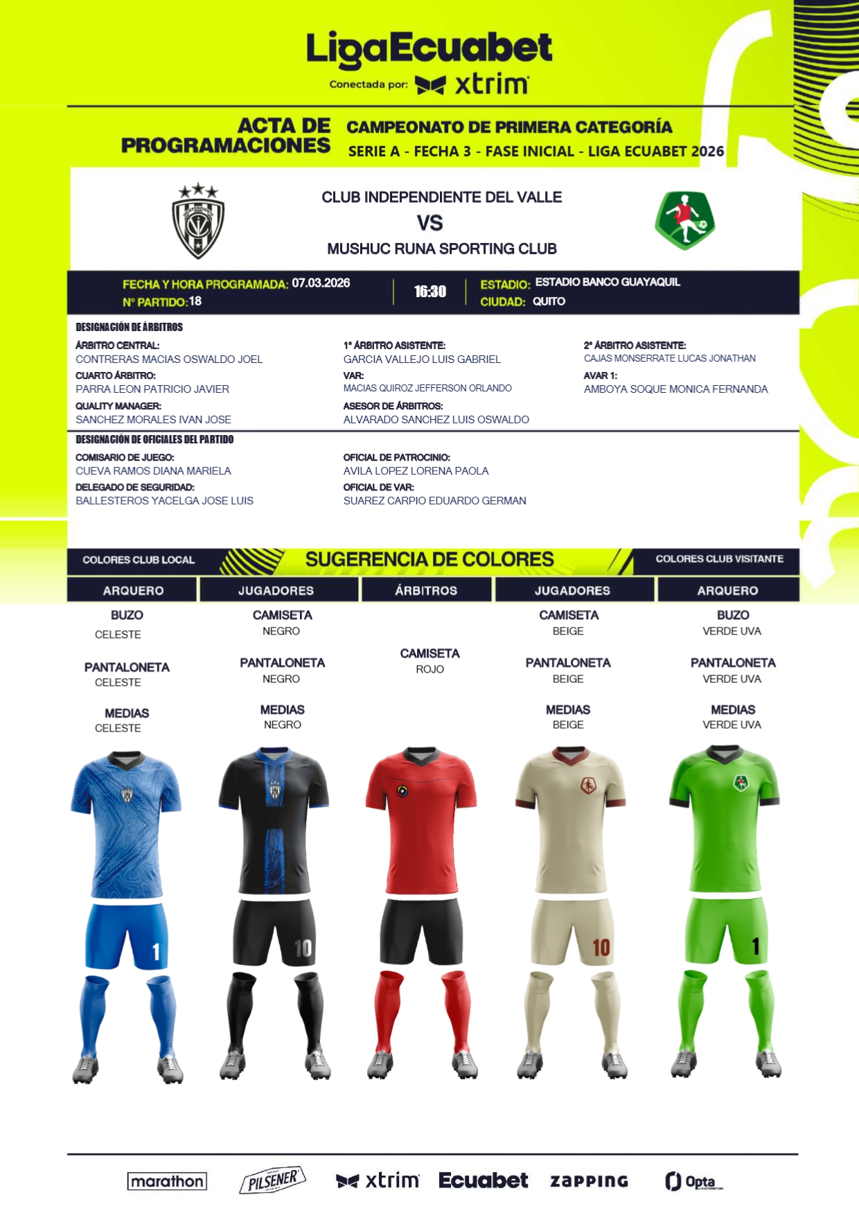 A través de diferentes infografías, la Liga Ecuabet procedió a la designación de los jueces para esta jornada, misma que detallamos a continuación.