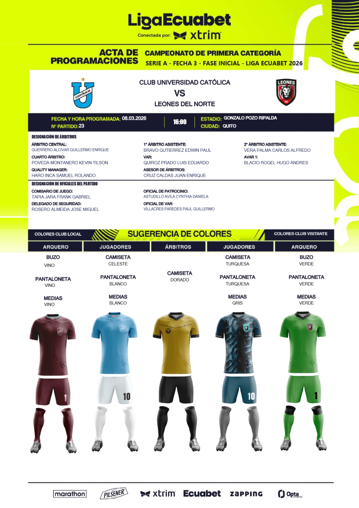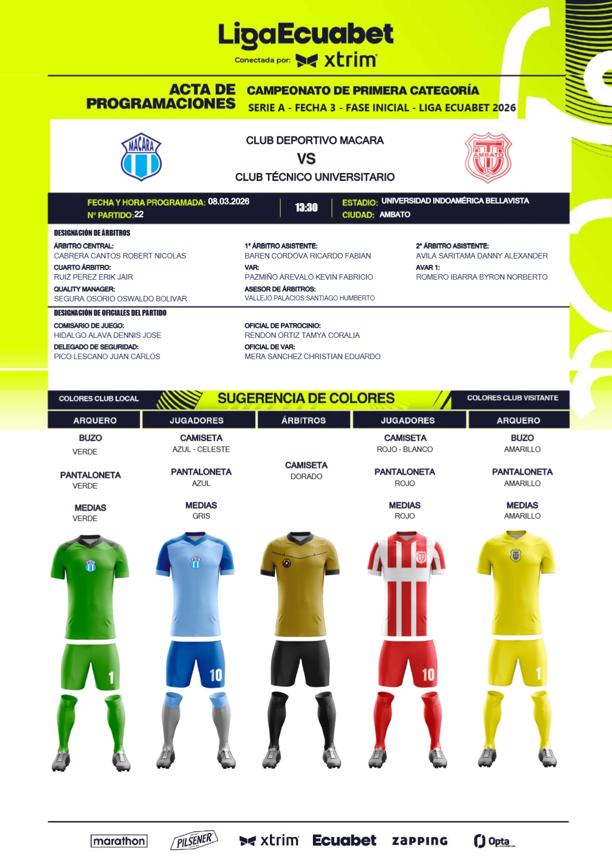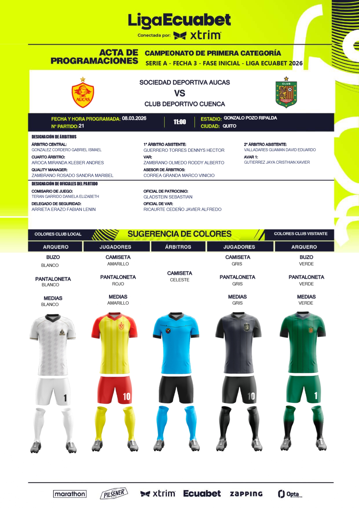 A través de diferentes infografías, la Liga Ecuabet procedió a la designación de los jueces para esta jornada, misma que detallamos a continuación.