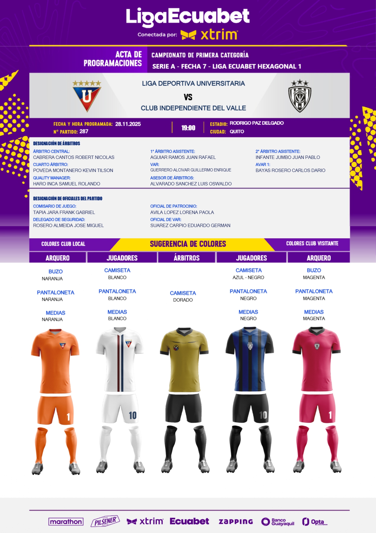 Este fin de semana se cumplirá una nueva jornada de la LigaPro, en lo relacionado al hexagonal principal y al que entrega un cupo a la próxima edición de la Copa CONMEBOL Sudamericana, misma para la que se han designado a los jueces que estarán al mando de los diferentes encuentros, mismos que detallamos a continuación.