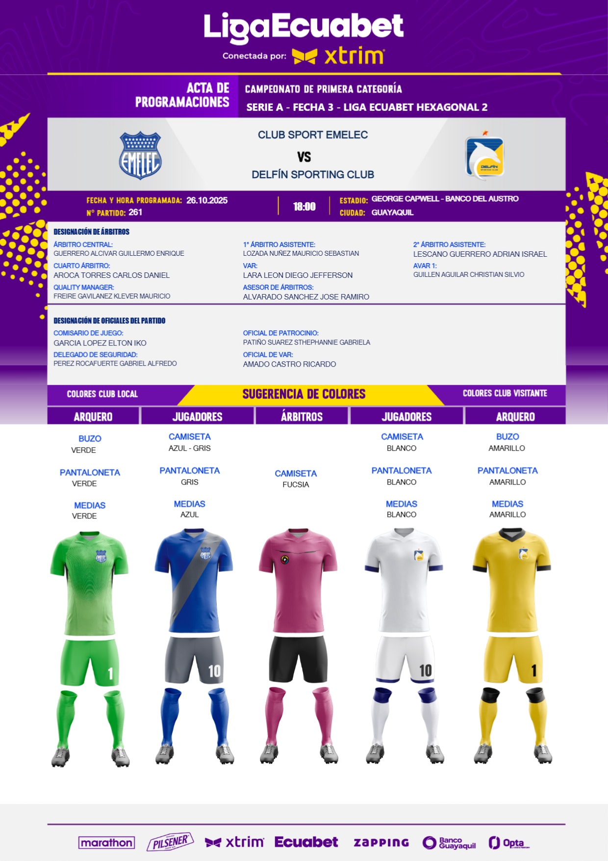 La tercera fecha de los hexagonales de la LigaPro se estará cumpliendo desde este viernes en las canchas del país y salvo el encuentro entre Liga de Quito e Independiente del Valle que se pospuso, se dio a conocer la designación de los jueces para los diferentes encuentros, mismos que detallamos a continuación.
