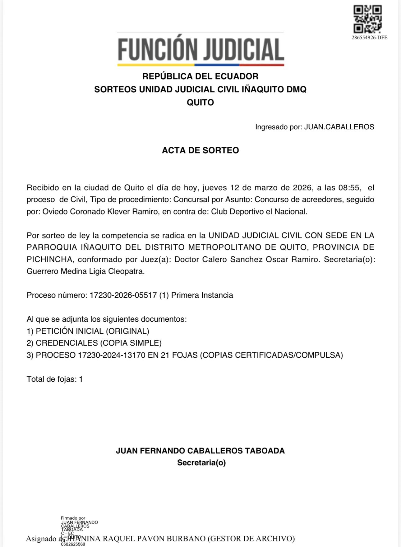 La información que se ha podido conocer determina que la acción legal fue interpuesta por Klever Ramiro Oviedo Coronado (socio del club), solicitando que la justicia declare la presunción de insolvencia del club y disponga la apertura de un procedimiento concursal.