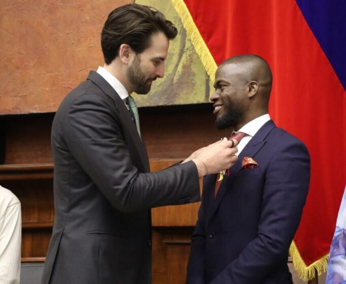 La mañana de este martes en el pleno de la Asamblea Nacional fue condecorado con la distinción Vicente Rocafuerte al mérito deportivo, el ahora histórico goleador de la selección ecuatoriana de fútbol Énner Valencia. Reconocimiento que resalta el esfuerzo, la disciplina y el compromiso que ha demostrado a lo largo de su carrera, así como el impacto positivo de su figura dentro y fuera de la cancha.