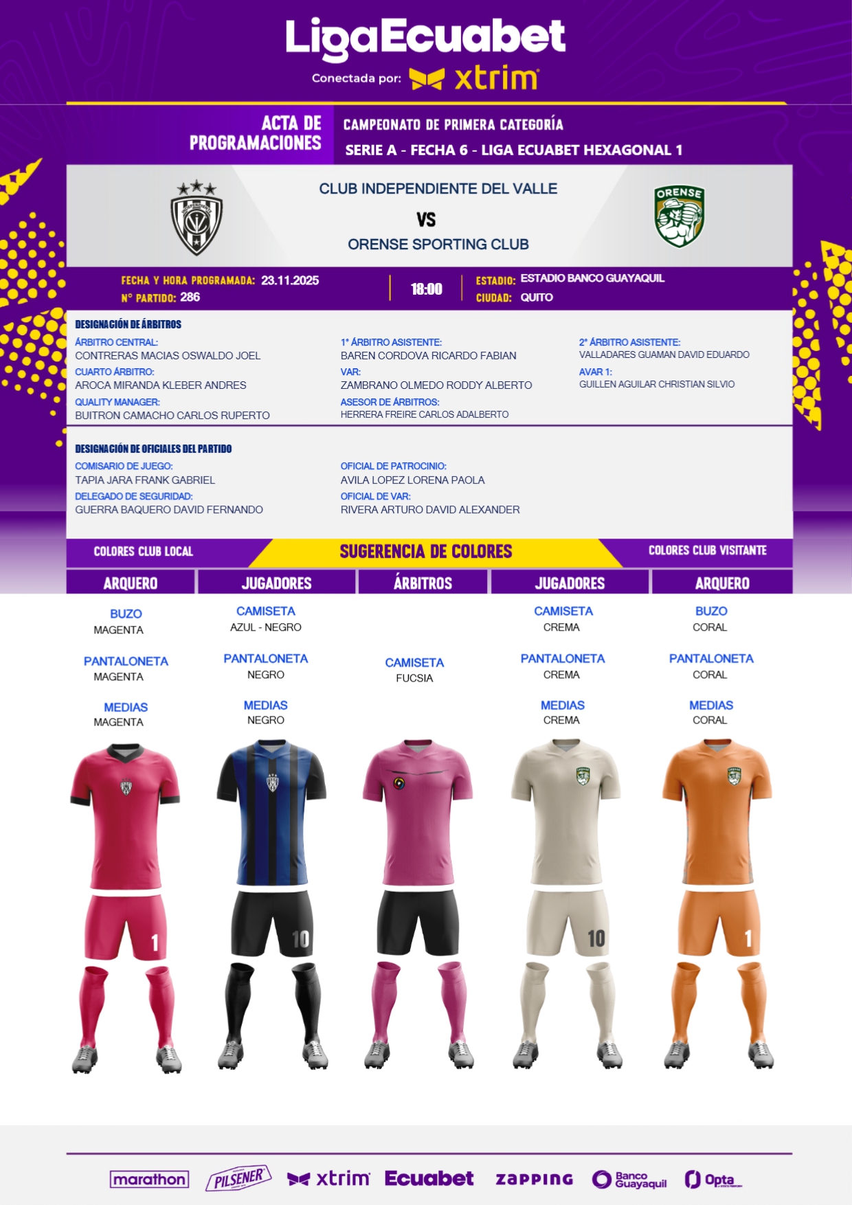 La sexta jornada de los hexagonales de la LigaPro del balompié ecuatoriano se estará cumpliendo este fin de semana en las diferentes canchas del país y para este nuevo capítulo se designaron los jueces que estarán al mando de los diferentes compromisos, mismos que detallamos a continuación.