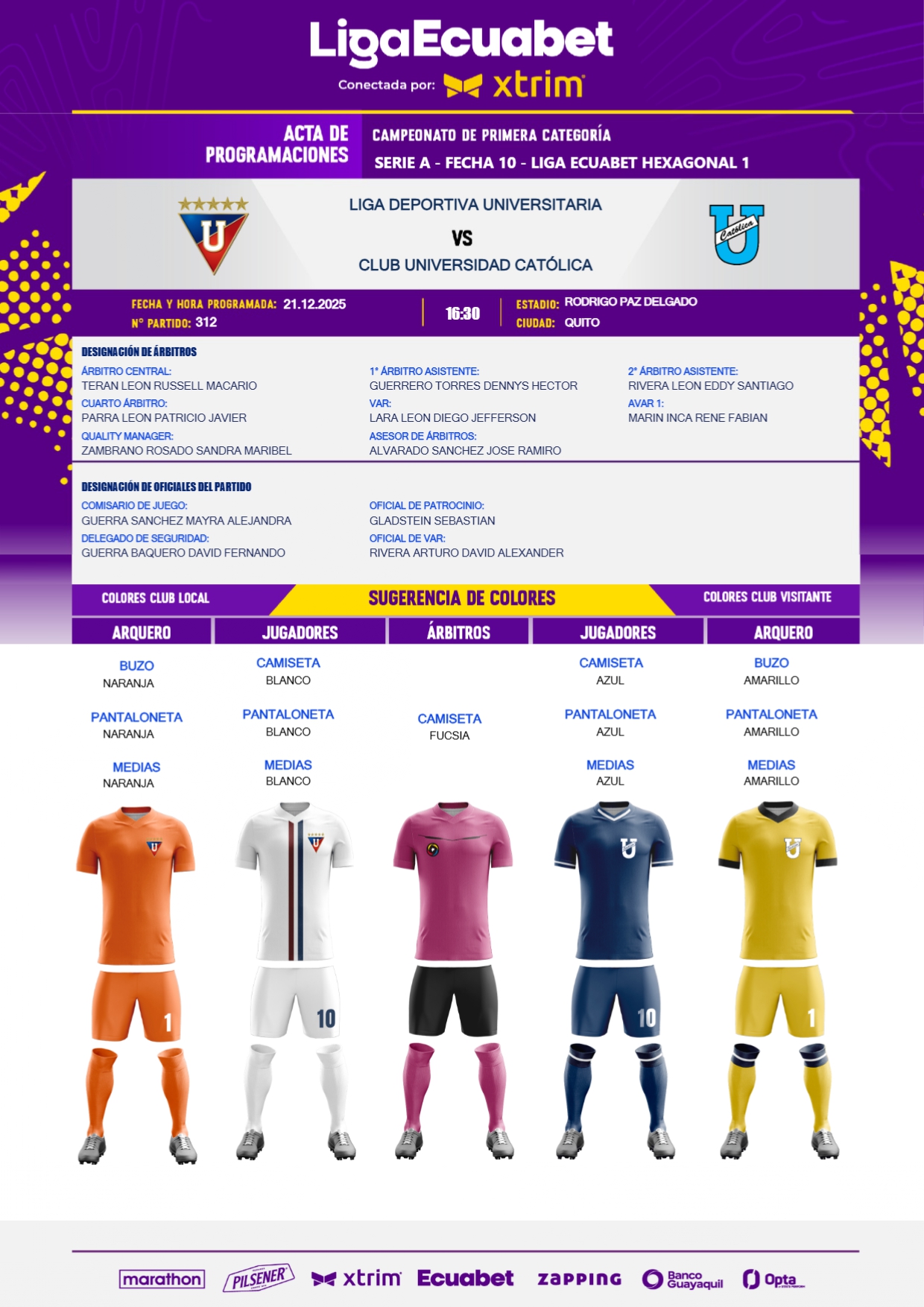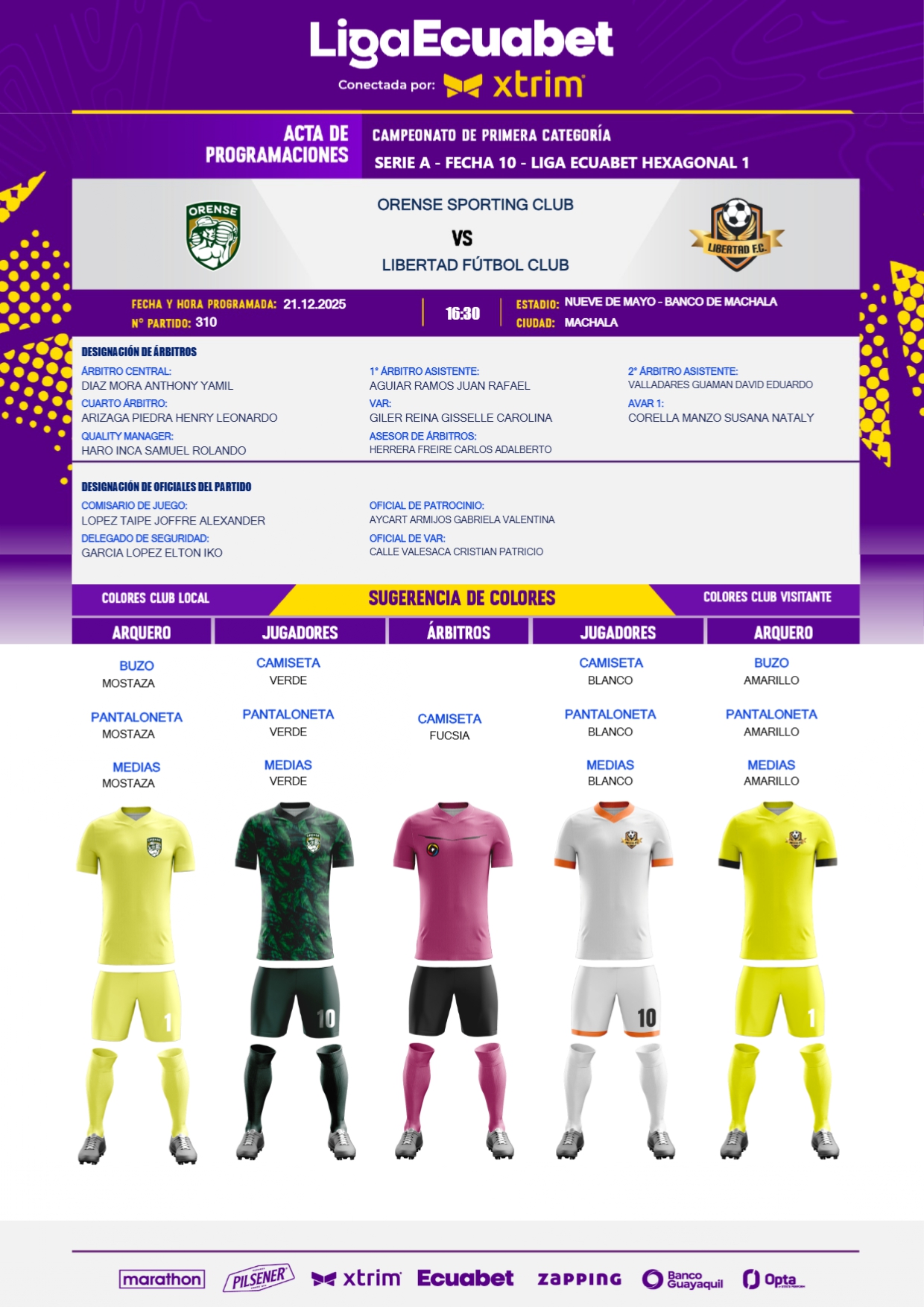 Este fin de semana se cumplirá la última jornada de la LigaPro en las diferentes canchas del país, para lo cual se designaron los jueces que estarán al mando de los diferentes compromisos, mismos que detallamos a continuación.