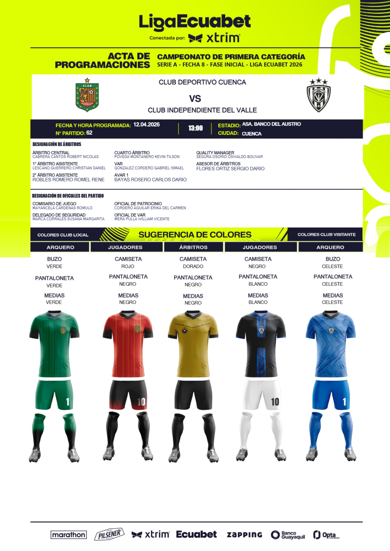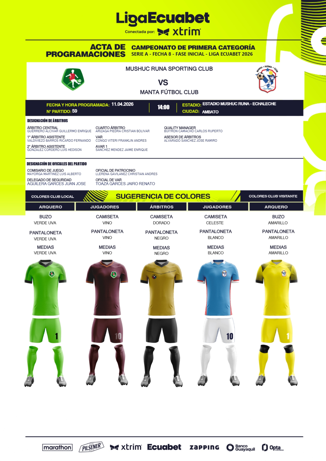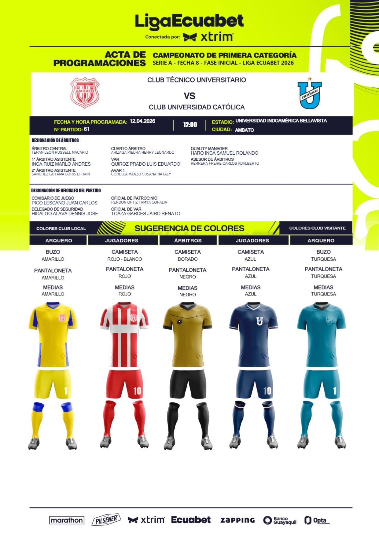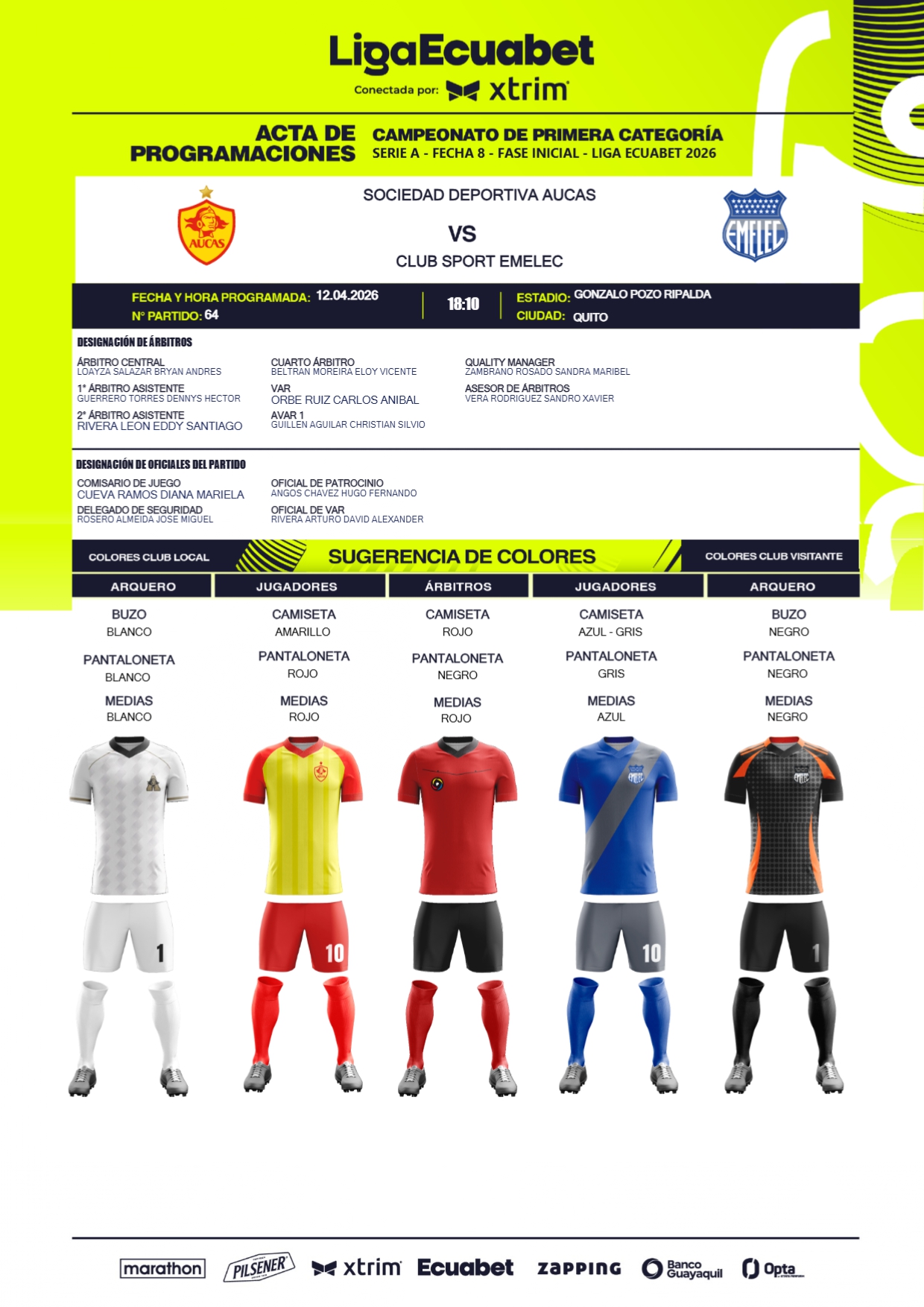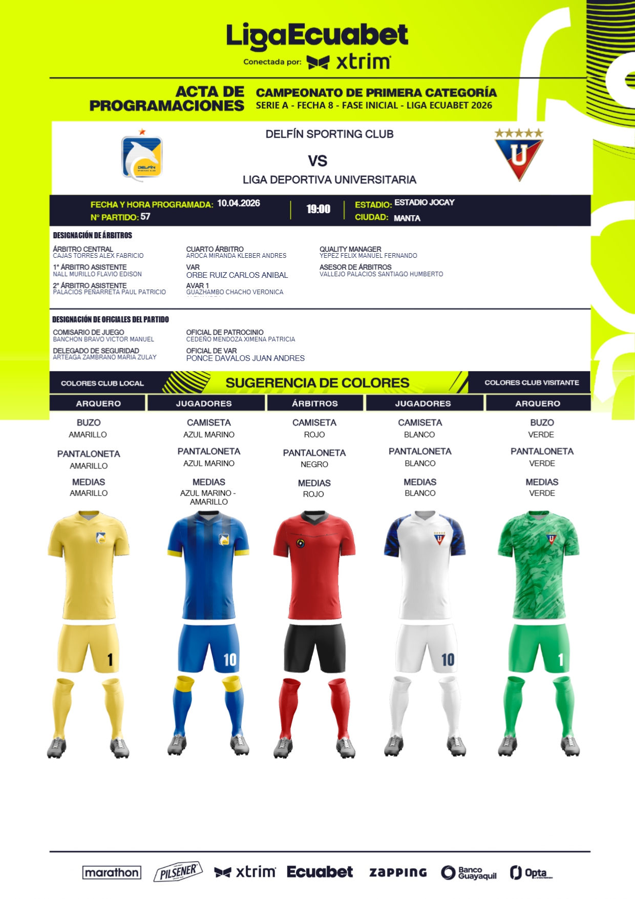 Este fin de semana se estará cumpliendo la fecha 8 de la Liga Ecuabet, misma para la que fueron designados los jueces que estarán al mando de los diferentes compromisos, mismos que se cumplirán desde las 19h00 de este viernes tanto en el estadio Jocay, como el Monumental.