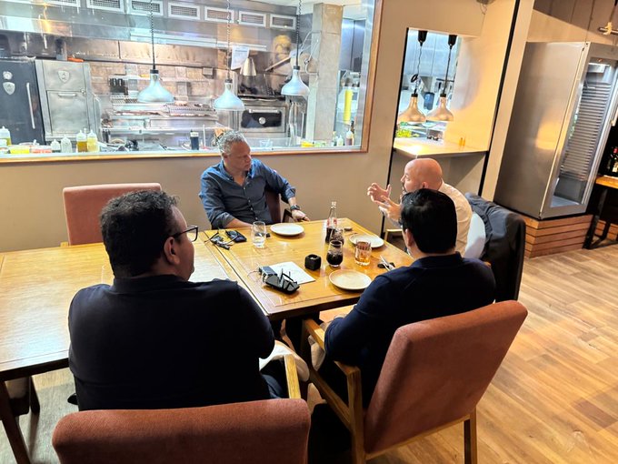 La fotografía compartida por el colega Roberto Omar Machado, da cuenta del momento en el que ambos directivos conversan, cruzan ideas y no se descarta que uno de los dos apoyado por la bandera de Leones FC, participe en las próxima elecciones, donde se buscará un cambio de aires en la entidad rectora de nuestro balompié.